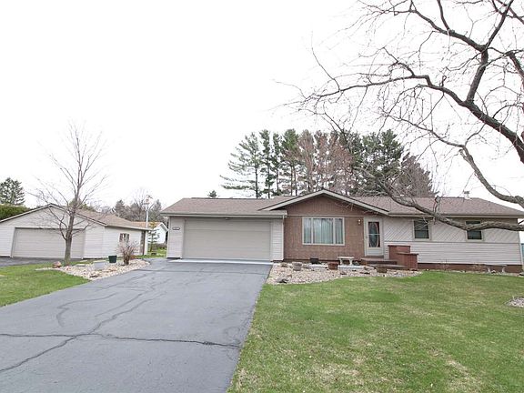 Pride of Ownership. Well cared for ranch. Village of Rudolph, across the street from Rudolph ball park. 3 bedroom, 2 bath, 4 stalls of garages. 2 attached plus 2 stall detached. .60 acre lot, patio doors off dining room overlooking landscaped yard. Lower level has 2nd bathroom area, laundry facility, storage, and rec room possibilities with gas space heater.