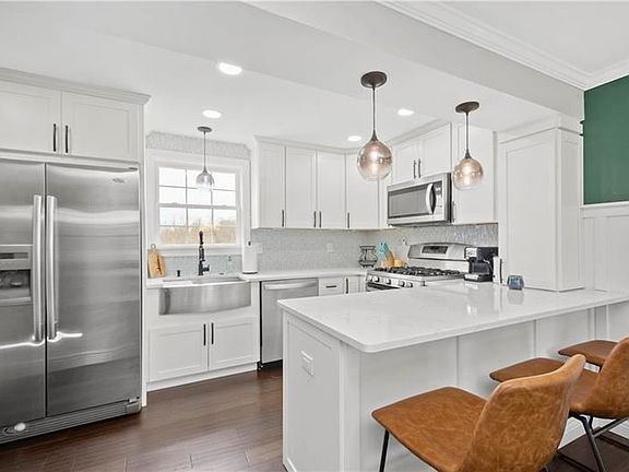 What a charmer! This three bedroom brick colonial has all the right updates! Stunning engineered hardwood floors throughout, beautiful white kitchen with Corian counters is open to the dining room creating a spacious and easy flow. The living room has a Stackstone vent less gas fireplace and sliders leading to the Composite deck which overlooks the spaces yard. Upstairs the owners bedroom offer is great storage in the walk-in closet. Two additional bedrooms sharing a updated bath room. There is nothing to do but move in! Great location near the park. Don't miss this one!