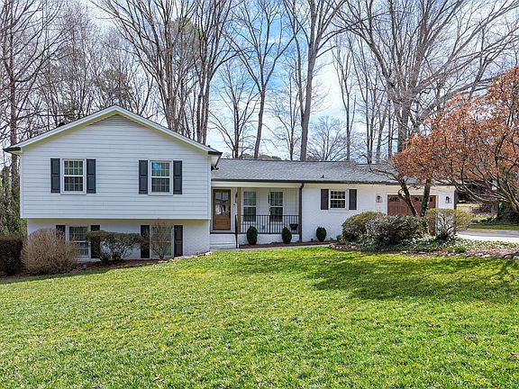 Mid-century charm with modern flair. This home is gorgeous with the loving updates made by the sellers. The exterior has been updated with fiber cement siding, garage door and front door. The open floor plan makes entertaining easy. The light and bright living room with vaulted ceiling opens to the kitchen and dining rooms. You will note the beautiful engineered hardwood flooring throughout the first first and second levels. The kitchen is appointed with quartz counters, SS appliances, center island and tile backsplash. All the baths has been remodeled. The primary bedroom has a luxury bath with walk in shower and walk in closet. Downstairs is the family room with fireplace, built in shelving and cabinets and LPV flooring. Enjoy the outdoors from the privacy of the deck or patio with firepit overlooking the fenced back yard. All you have to do is move in! Great Midtown location. Close to North Hills, downtown Raleigh, shopping and restaurants.