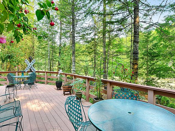 Double lot of riverfront in Welches, not leased land, you own it! Amazingly peaceful setting at end of dead-end road. 2 lots for xtra privacy. 630sqft of decks, Sprinkler system, detached 15x15 shop + tool shed & 24x20 carport. Kitchen has knotty pine glass-front cabinets & under mount sink. Knotty pine on lower level walls, HUGE Master bedroom 473SQFT. Great vacation & VRBO property. Call today!