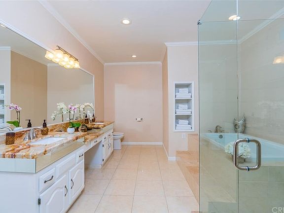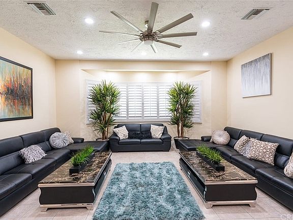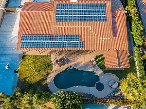 Welcome to your own private oasis in the desert! This peaceful, open architecture immaculate 5 bedroom, 5 bath home has almost 4000 sq ft of updated living space on over 1/3 of an acre. Enter to dramatic vaulted ceilings with exposed beams and an airy, light-filled floor plan. There are plantation shutters and ceiling fans throughout this entertainer's paradise. The big bright gourmet kitchen has ample counter space, granite countertops and a roomy chef's island complete with breakfast bar. You will love entertaining in the elegant and enjoyable living room with custom made bar. The master suit has a luxurious jetted soaking tub, extra large shower, dual sinks, a large walk-in closet and a glass slider opening to your incredible back yard oasis. Step outside and it's a serene private paradise with 5 1/2' wrap-around privacy walls, complete with basketball court, pool table, pebble tech pool, spa, covered cabana, citrus trees, and mountain views. The newly stamped concrete side yard has a fully enclosed, gated RV parking w/hookups, 3 car garage and generous driveway. Recently added solar will save thousands in electric bills. Home is filled with upgrades and updates including lush landscaping and irrigation system, fully painted exterior, iron work and custom fencing with gated driveway. Nearby schools, shopping, and all the desert area has to offer is just minutes away. Schedule your tour today