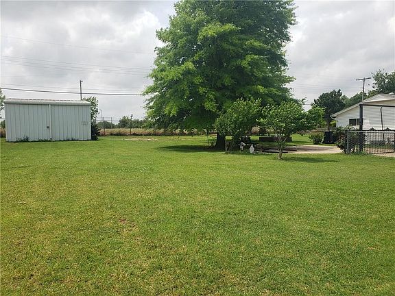 YOU WILL LOVE THIS WONDERFUL PROPERTY!!! The garage was converted and the property has an inside laundry, large family room with a brick fireplace, beautiful large kitchen with stained cabinetry, crown molding throughout, 3 bedrooms, 1.5. baths, Large covered patio. Extra Large Inground Storm Shelter that holds 17 people. This property sits on three lots with a large work shop that holds one car. Wrought Iron Double Gates and also Chain Link Double Gates. Lots of privacy as no home in back.