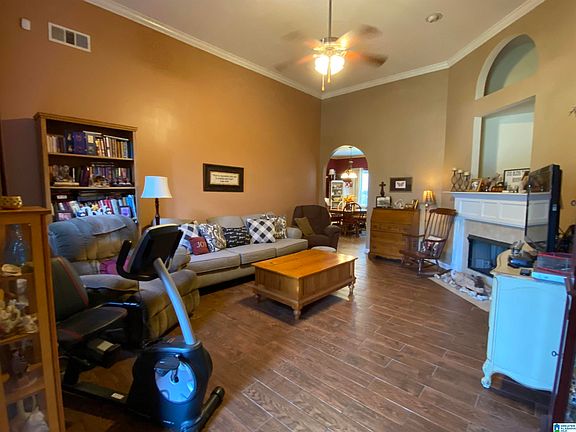 Charming & welcoming one level, 3 bedroom, 2 bath home located in Spring Valley Estates, Leeds, AL! Former owner was an artist/designer, and added many unique and innovative features, including beautiful gunstock porcelain floors in common areas + primary bedroom, with ceramic tile in kitchen; several archways; corner fireplace in the Great Room. Semi formal dining room leads into a chef's dream kitchen! Custom cabinets galore, and lots of extras in the kitchen bring added beauty and appeal to this beautiful home! Loads of storage in the laundry. Primary bath has an updated separate shower and garden tub. The other 2 carpeted BEDROOMS (will consider a carpet allowance) are separated from the primary by the 2nd bathroom. ROOF (upscale shingles), DISH WASHER, HOT WATER TANK & HVAC are less than 10 years old. Covered back deck (can be screened in), nice back yard with privacy fence enhanced by foliage. Convenient to Hwy 119, and I-20, close to BASS PRO, SHOPS AT GRAND RIVER, & Buc-ees.