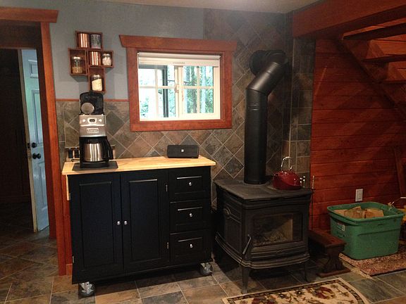 The epitome of a cabin in the woods. Metal roof and new windows. Vaulted ceiling with loft overlooks the living room. Hand stained wood finishes cabinets walls ceilings. Gourmet kitchen withstainless steel appliances, new high efficiency woodstove, New washer dryer. Professionally decorated, large rear deck and a front porch with rockers. New electrical, plumbing, water filtration system, great septic and well. Open floor plan, window box eating area, Slate porcelain tile and luxury vinyl floors. Mahogany Dutch door Entry. Surveillance system, surround sound and Wi-Fi. Circular drive, lots of parking and woodshed.