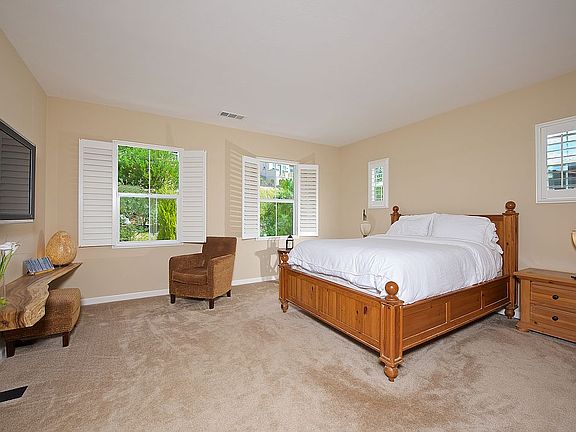 Value range pricing - $949,000 to $979,000. Gorgeous La Costa Greens home loaded with upgrades and stylish details! Beautiful Versaille pattern travertine floors with chiseled edges can be found throughout much of the home. The gourmet center island kitchen features granite countertops, double ovens, and a large breakfast area. The master suite boasts dual vanities, a walk-in closet, and soaking tub. One of the secondary upstairs bedrooms offers a private balcony while another is highlighted by a stunning stone wall. There is a full bedroom suite on the entry level that is great for guests. The powder room has been sleekly remodeled with a mosaic stone wall and hammered coppered sink. Outside, you will find incredible spaces including a charming courtyard with soothing spa and a lushly landscaped backyard with palapa bar, outdoor kitchen, and BBQ. Other features include arched hallways, wine room, upstairs laundry room, plantation shutters, central air conditioning, security system, insulated interior walls, solid core interior doors, AV wired, and 3 car garage. Residents enjoy "The Presidio" with sparkling pool, fitness center, and elegant clubhouse. Beautiful beaches, fantastic restaurants, great shopping, and world class golfing are all within minutes. This is truly Southern California living at its finest!