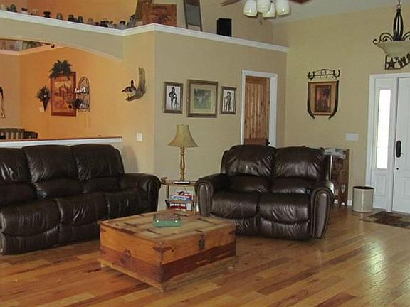 Looking for Country Living? Want peace and quiet in your own little part of the world? This home is for you! Located out of the hustle and bustle but close enough. This one owner custom built home has many upgrades and an in-law apartment. Walk into the spacious open floor plan and immediately notice the Hickory Wood Floors and solid Knotty Alder wood doors. Stone fire place completes the room. Kitchen offers granite counter tops, custom knotty alder wood cabinets and large island accented with stone. Large walk in pantry is perfect for storing all your kitchen small appliances. The home offers large bedrooms with walk in closets and each having its own bathroom. Media room is sound proof. Master bedroom offers a 12x13 walk in closet that is a concrete storm room. Windows are all triple pane hurricane windows. Spray insulation in the attic as well as filled concrete block walls. On demand gas hot water heaters and a four inch artisan flowing well. Outside offers a 24x32 metal/wood 2 stall barn with elec and water and feed/tack room. Stalls are 12' with automatic water. Fenced pasture with pond. A 40x50x16 metal building with two 12x12 roll up doors will hold all the "man" stuff. This building has water and electric. It is set up with a 12x24 room perfect for woodworking and a large overhead loft for storage. RV water/elec hook up on concrete pad. In-law apartment is separated from house by the garage and has its own private entrance and private porch. All this sitting on 5 acres!