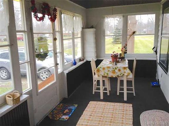 BACK ON THE MARKET! This beautiful home backs to the woods. Bright & cheery 20 x 8 sun porch. Updates include a brand new roof in 2014 and updated windows throughout. Clean dry basement, glass block windows, updated copper plumbing, vinyl drains, circuit breakers & laundry hook-ups. Bonus room in basement and huge unfinished attic could make possible 3rd bedroomS! Above ground pool. Low Niagara County taxes of $2,723 BEFORE Star($498). A fantastic Amish built 24 x 12 storage shed stands in place of a garage. Tax rolls reflect actual square footage of 768 sq. ft.