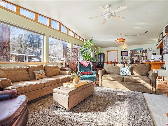 Charming 1940s artist's dream home on 0.55 Acres with vacation rental income potential & stunning location! No HOA! Nestled on a serene lot in Durango's beautiful Animas Valley with water rights from the adjacent irrigation ditch, this 2,005 sq. ft. 3 bedroom main home (plus a 380 sq. ft. ADU) offers a unique blend of historic character and modern conveniences. Currently the home is configured with 2 bedrooms in the main portion with a 3rd bedroom in an attached separate studio, and a detached ADU hosting the 4th bedroom, creating a property perfect for multi-generational living, flexible living space, and generating rental income. The main home features a bright and inviting living space, enhanced by south-facing passive solar windows that fill the interior with natural light. The Saltillo tile flooring adds warmth and character, complemented by partial carpeting in select areas. The kitchen is comfortably appointed with granite countertops, a breakfast bar, a gas range, and a fridge (both updated in 2013). The natural gas fireplace efficiently heats the main living areas, while radiant baseboard heating can provide additional comfort. The primary suite includes a 3/4 bath, a walk-in closet, and an additional closet for ample storage. A second bedroom, which is non-conforming without a closet, offers flexibility for guests, an office, or additional living space. The laundry room conveniently doubles as a 3/4 bath, adding functionality to the home. This property also includes two income-generating units. The back cottage (ADU), currently rented for $1,550 per month (all-inclusive), features one bedroom, a 3/4 bath, a fridge, and an oven, with propane provided through Amerigas. The west side studio, rented for $1,000 per month (all-inclusive), is a charming space with Saltillo tile throughout, a closet, and a kitchenette equipped with a mini fridge, a full-size fridge, and an electric cooktop. The studio also boasts private patio access and a full bath with a beautiful clawfoot tub, adding to its unique appeal. The outdoor space is equally impressive, offering expansive patio areas, a dedicated dog run, and a storage shed for added convenience. The lush landscaping includes a thriving garden with raised beds, wildflowers, and a variety of fruit trees, including cherry, apple, and three apricot trees. Mature vegetation such as aspens, lilacs, iris, daylilies, forsythia, strawberries, and roses creates a picturesque setting, while one of the oldest ponderosa pines in the region adds a touch of history. Practical additions include a carport at the main house, additional barn coverage with a carport, barn storage, and a pump with water rights. The home’s durable metal roof and stucco exterior ensure longevity and low maintenance. This one-of-a-kind property offers a perfect mix of historic charm, modern comfort, and investment potential. Whether you’re looking for a versatile family home or an income-producing property, this gem has it all, just 20 minutes to Purgatory Ski Resort and just minutes to Durango Hot Springs and PJ's local gourmet market. The home has been pre-inspected and please ask the broker for additional details and items already in progress.