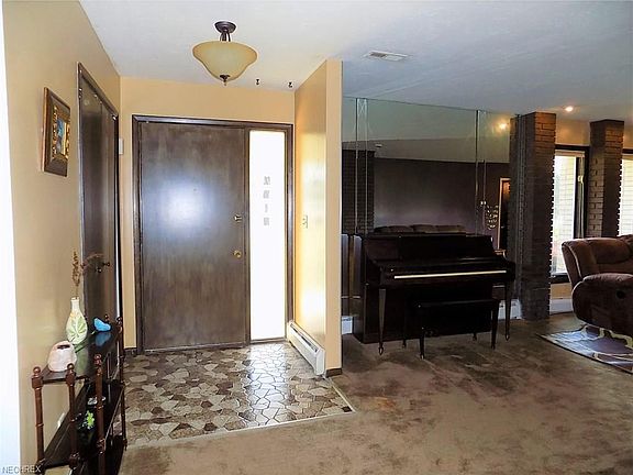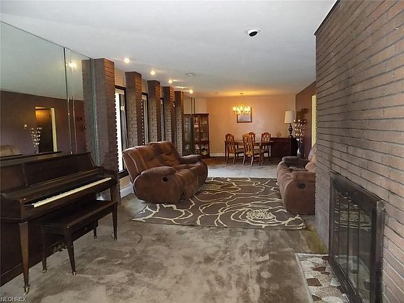 Sprawling ranch with over 2700 SF*Foyer entrance leads to a Living/Dining Room with woodburning fireplace*Kitchen has espresso stained cabinets, newer SS appliances, pantry & overlooks the large Family Room with view of 2 sided fireplace & step down area with vaulted ceiling & a wet bar with curved & built-in refrigerator*sliding door to huge covered deck overlooking decorative pond with waterfall & deep back yard with a shed*Family Room & Master Bedroom were a newer addition*Master BR has vaulted ceiling, sliding door to deck, huge walk-in closet, dressing with mirrors and leads to the Master Bath with double vanity sinks, huge whirlpool tub & separate shower*2 additional Bedrooms, one with private bath & walk-in closet*Another full Bath is off the main hall*1st floor Laundry plumbing could be converted back*Half bath*Lower level has a rec room & plenty of storage area*Crawl space under bedrooms in original house and under newer addition*Recently updated both electric boxes*Newer boiler*large 2 car rear entry garage w/pull down stairs to attic storage above*Award winning Independence schools & awesome community park, pool & services*Home needs updates, but with your touches could be spectacular!
