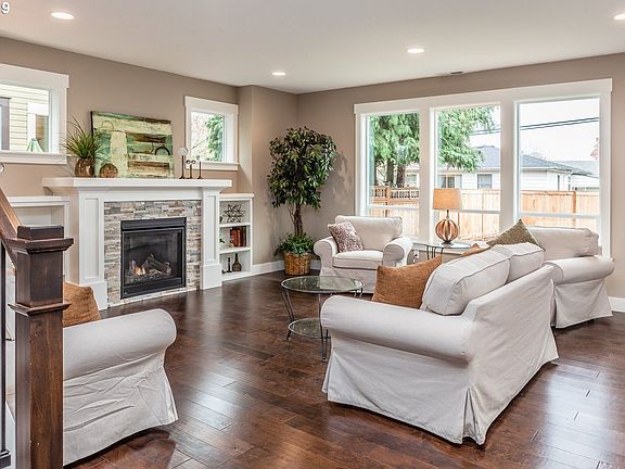 Brand-New 4-BR, 2.5bth in University Park on 40X110 lot has all the bells and Whistles: generous size rooms, open floor plan, engineered hardwood floors, slab counters, fireplace built-ins, formal dining + breakfast nook, master suite, central A/C, 95% gas furnace, tank-less gas water heater, laundry up, detached garage, new sidewalk. It's special! [Home Energy Score = 8. HES Report at https://rpt.greenbuildingregistry.com/hes/OR10181509]