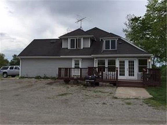Beautiful 5 bdm home on 10 (+/-) acres! Convenient main floor master bedroom en suite. The home has a kitchen/dining room combo. The formal dining room offers cathedral ceilings, a gorgeous fireplace and hardwood floors. The enclosed porch off the kitchen provides panoramic views of the ponds and land. There are 4 more spacious bedrooms, a full bathroom and additional laundry area upstairs. Huge finished, lower level family room. Property hosts 3 ponds (2 are shared), and 3 outbuildings and a wrap around drive way!