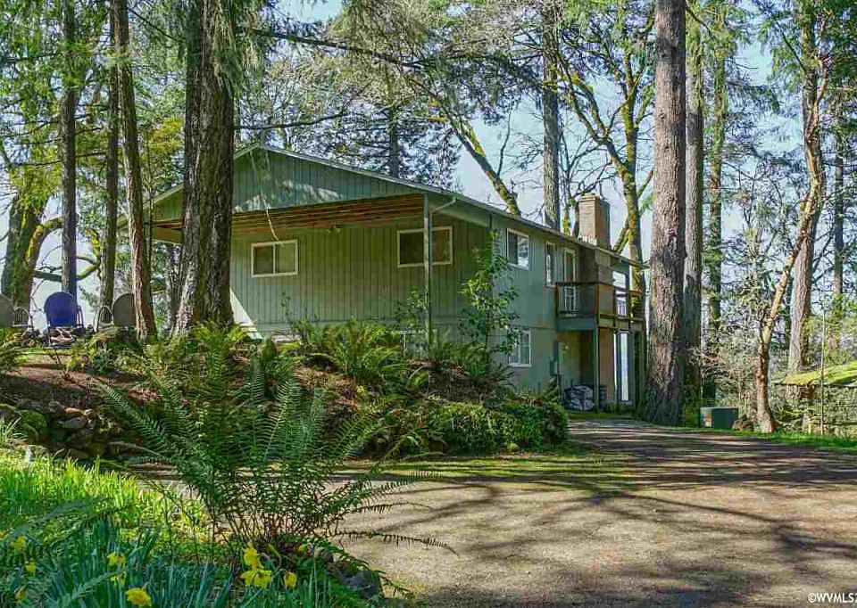 Accepted Offer with Contingencies. Unbelievable privacy with astonishing sunset view on 12.3 acres just minutes to town. Nature lover's dream! Secluded, natural oasis with magnificent views of the Willamette River, Valley, & Coastal Range. There's a studio, storage shed with lean to, and two barns. The property is fenced, cross fenced, & has multiple pastures. There are hiking trails & a creek with a waterfall. A wonderful horse property or meditation retreat. Home needs TLC. Highly motivated seller. Bring all offers.