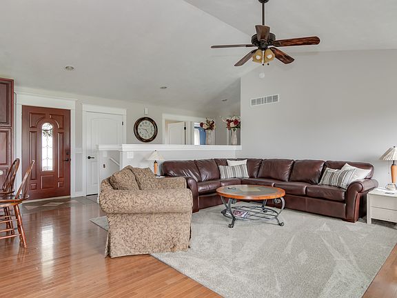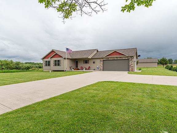 Contemporary 3 BR, 2 Bath, 1560 sq. ft. ranch with plenty of room for expansion. This beautiful, move-in ready home built in 2012 checks all your boxes – Open floor plan, hardwood flooring, spacious kitchen with large island, vaulted ceilings, country setting, 1-acre lot, 2 ½ car attached plus 28X40 detached garages – the list goes on. Need more room? The large 1500 sq. ft. basement with 9 ft. ceiling and triple egress windows is stubbed for a 3rd bath, it comes semi-finished with studded and insulated exterior walls - ready to finish as needed. Other notable features include: Main floor laundry, large master bedroom with master bath, and walk-in closet, large, shaded deck, and double-wide cement driveway with extra parking area. Home is minutes from Gull Road shopping, but in a peaceful, country setting. Delton Schools.