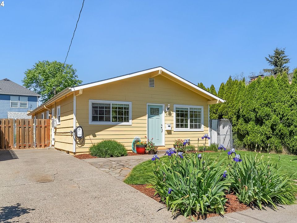 This perfectly updated one level ranch is ready to go! The huge primary suite features a large remodeled bathroom with marble vanity, walk in shower, and tile floor. This house has fantastic closets throughout and the primary suite has two! One primary bedroom closet is 11 feet wide with double doors, and the other is a generous walk-in with fantastic organizers. The 4th bedroom is huge and could also be a very comfortable family room / TV room. The lovely remodeled kitchen features custom cabinets, quartz countertops, stainless appliances, big pantry, and so much space! The sunny living room has gorgeous hardwood floors and is open to the effortless dining area. The large and updated hall bathroom has a tiled shower, marble vanity, and tile floors. The adorable back yard & patio lead you to the side yard where you'll find raised beds ready for your spring & summer gardening. With so many energy efficient upgrades, no wonder this house has a 9 out of 10 energy score! Electric car charger, solar panels, new windows and more. Air conditioning is already installed and ready for the hot summer ahead. You'll find smart details like seismic retrofits to the foundation and a handy storage in the big backyard shed. Fantastic neighborhood community on such a super quiet street. Tucked away from traffic and activity -yet in the very best part of FOPO with shops, restaurants, cafes, and parks so close by. Excellent close-in quiet location! [Home Energy Score = 9. HES Report at https://rpt.greenbuildingregistry.com/hes/OR10227474]