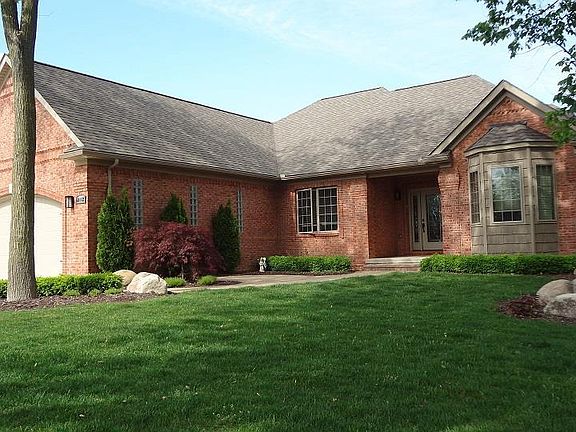 GORGEOUS CUSTOM brick ranch with spectacular backyard patio area for entertaining. Many custom finishings throughout including Maple cabinetry, tile and slate showers, coffer ceiling in great room w/lighting. Stone fireplace with matching stone halfwalls leading into great room. Pan and cathedral ceiling in bedrooms and dining.Master has huge shower w/bench and rainshower showerhead. Bedrooms have Jack and Jill bath with private sink/cabinets areas. Remarkable and spacious custom patio with built in grill and open air mancave with plumbing and electric, built in maple bar and cabinets with granite and sink. Paverstone walkways and beautiful landscaping.
