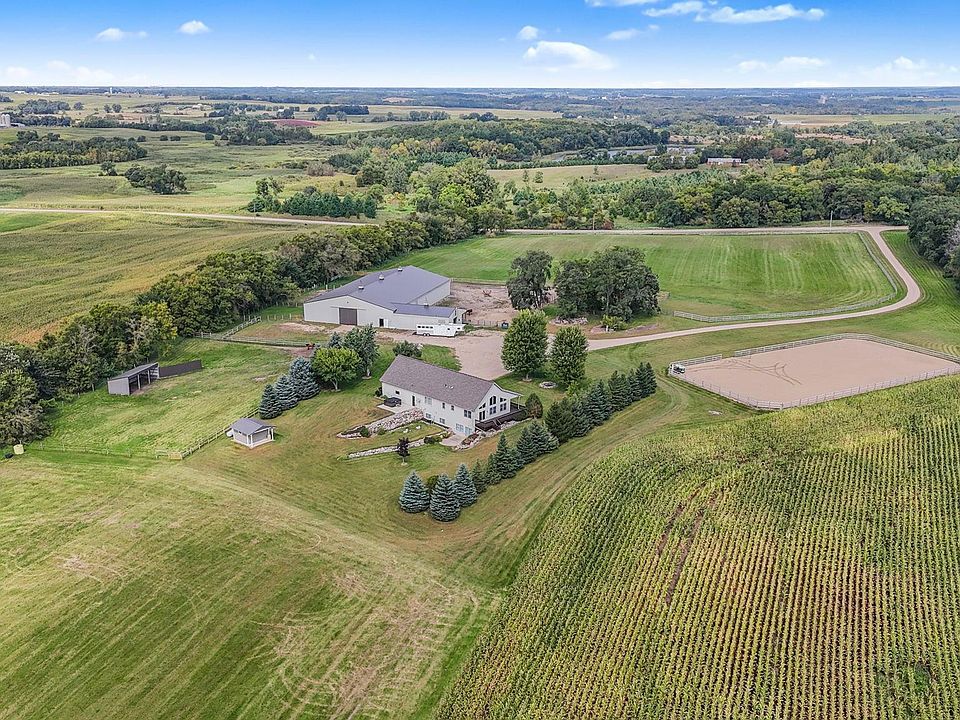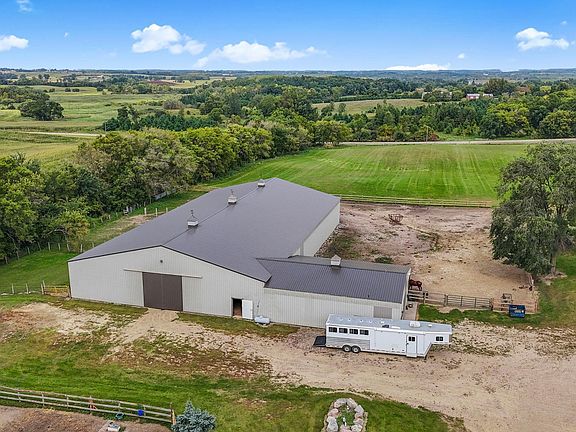 Discover this Ultimate Rural Retreat! This exceptional property has over 37 acres spread across two parcels. The property includes approximately 20 acres of tillable land and approximately 11 acres of pasture. Perfect for the Horse enthusiasts with an Indoor Riding Arena, an Outdoor Riding Arena, smaller paddocks, 6 horse stalls and a heated tack room with a bathroom! Enjoy the breathtaking Million Dollar view from the Kitchen, Dining Room, and Living Room! Trapezoid windows, vaulted ceilings and recently refinished wood floors make the interior breathtaking as well! Knotty Pine doors and Kitchen Cabinets add to the country experience! The home offers four bedrooms and three full bathrooms, including a private primary suite! The finished basement is a walkout for added convenience. The large covered porch and expansive deck are perfect for entertaining or relaxing outdoors! There is a large two car heated garage with it's own air conditioning system! The home has steel siding and all of the roofs were replaced in 2021. This is a rare opportunity that combines a beautiful home with country charm and unbeatable equestrian or hobby farm amenities! Don't miss your chance to make this dream property yours! Schedule your private tour today!