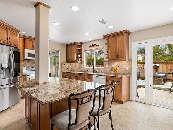 Located on a desirable CUL-DE-SAC street in the Brookfield community of Carlsbad, this 4 bedroom, 2 ½ bath home has many UPGRADES including new carpet, freshly painted interior rooms, remodeled guest bath, copper plumbing, replacement windows, shutters, new fencing and concrete patio as well as OWNED SOLAR. Upgraded 200-AMP electrical panel and newer A/C and furnace with SMART thermostat are added bonuses. Artificial turf out back makes gardening a snap! A dual-sided fireplace creates a warm ambience in both the living and family rooms. Open kitchen includes solid wood cabinets, granite countertops and a large island with seating for 4 as well as a side pantry and 20-bottle wine rack. Cheers! You're not just buying a home, but buying into the Brookfield lifestyle. Super fun and social neighborhood with holiday events galore! 4th of July parade and BBQ, Easter brunch with egg hunts, Halloween haunted houses and December Holiday light decorating contests! We have even had Santa sightings! Community pool and spa, BBQ, park area and tot lot. Low HOA and no Mello Roos. Top-rated San Marcos schools. Welcome Home!