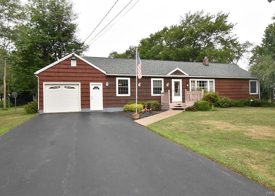 Welcome to 6816 Derby Rd. Ranch home features 1662 sq ft on 1 acre lot. Open concept floor plan, nice working kit (gas stove & ref included "as is") 20x13 family rm w/gas fireplace, beam ceiling, french door to 26x37 deck & hot tub over looks deep lot. Formal dining rm, beautiful liv rm w/hardwood fls front & back windows. 15x10 bdrm freshly painted, carpet w/half bath. 2 bdrms w/hardwood fls. Off front entrance 8x6 rm makes a great playroom or office. 14x21 partially finished basement w/drybar, full bath, glass block windows, storage lockers, workbench. Central air, 1.5 attached garage w/attic entrance, black top driveway.