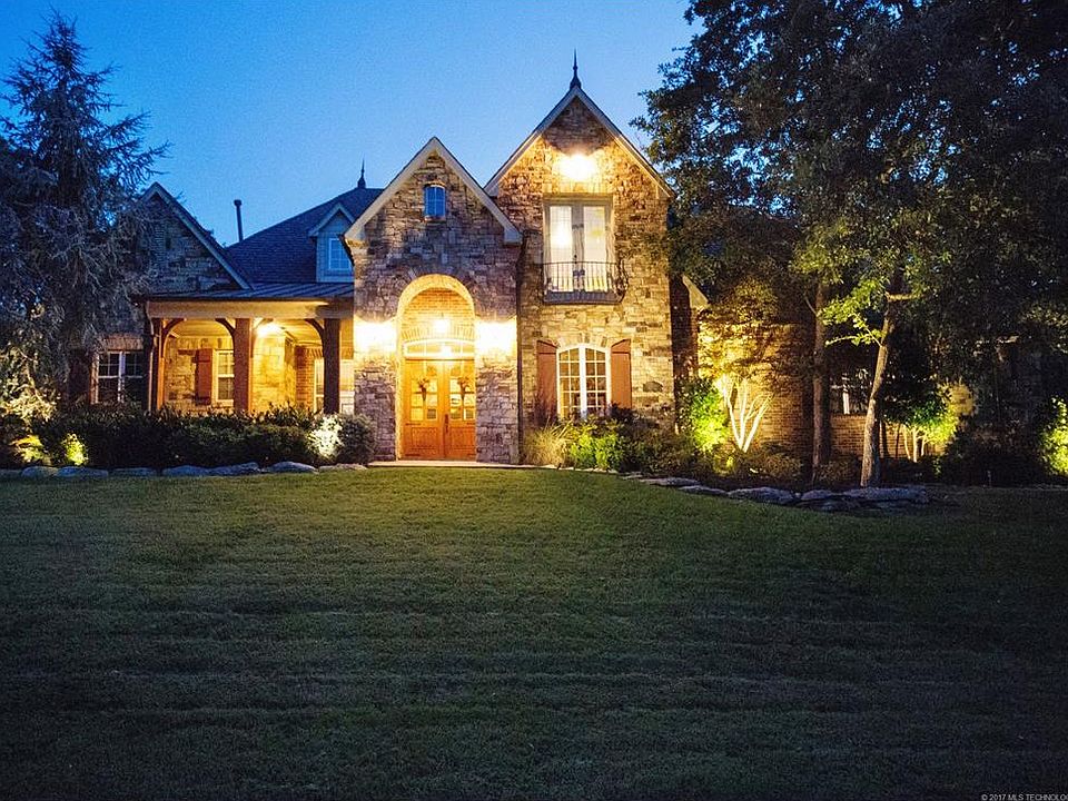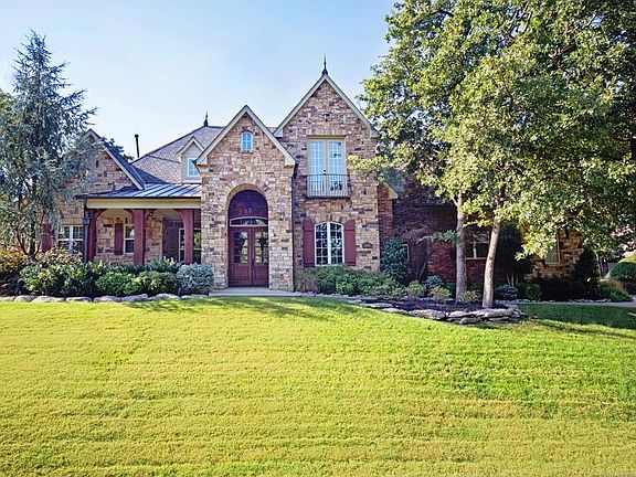Gorgeous, custom home in gated neighborhood with mature trees! Expansive front porch has a lovely pond view. Stunning entryway with two curved brick archways, leading to the family room, featuring a huge bay window and stone fireplace surrounded by built-ins. Spacious chef's kitchen with large island, double ovens and gas range. Amazing home for entertaining, with heated outdoor living featuring full kitchen, fireplace and pergola. Room for a pool with plans. 4 car side entry garage with storage. and high ceilings. Beautiful and spacious master bedroom has access to outdoor living space, huge master bath with separate shower, tub and toilet room, leading to the elegant master closet. 2nd bedroom downstairs with private bath. 5 bedrooms, 3 full and 2 half baths, 2 living areas plus bonus room, formal dining, dining nook and private office with french doors and built-in desk area.