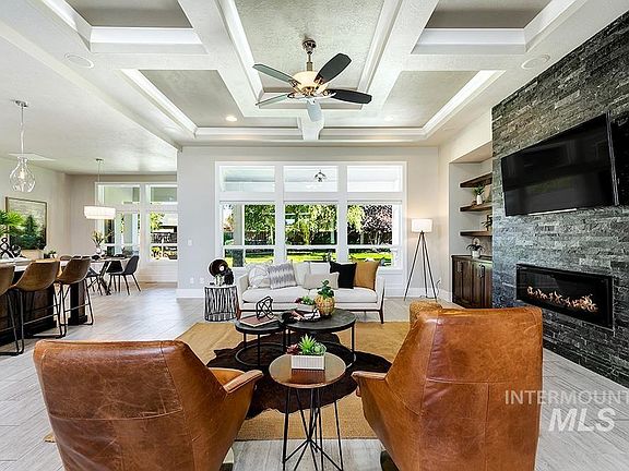 An elevated modern-prairie single-level in the premier SpurWing Grove neighborhood! Built by James Clyde Homes, this exceptional residence features quality craftsmanship on an oversized east-facing lot, just moments to The Club at SpurWing. HOA dues include a SpurWing Lifestyle Membership, providing access to the pool, workout facilities, and dining at the club. The bright interior features an expansive open great room topped with coffered ceilings, large windows, and a statement stacked-stone fireplace. The gourmet chef's kitchen is equipped with top-of-the-line Viking® appliances, deep wood cabinetry with ambient lighting, a spacious walk-in pantry, and a built-in wine cooler. Designed with privacy in mind, the bedrooms are separated within a split-bedroom floorplan, where the primary suite sits on a wing of its own featuring beautiful tray ceilings with lighting, patio access, and an indulgent en suite bathroom with a large walk-in closet.