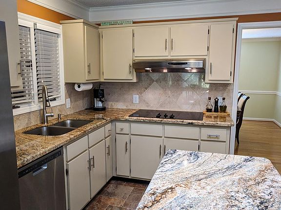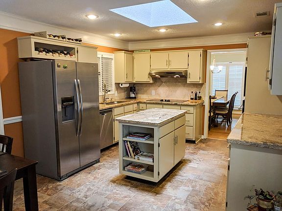 Beautifully updated home with huge GR with stone FP and floor to ceiling windows across the back. Large kitchen with skylight, pantry and island, granite countertops and marble backsplash. Custom cabinets with pull outs. Updated appliances. XL master suite with tiled shower, sep whirlpool tub, dbl vanities, and his and her walk in closets. Partial plantation shutters.