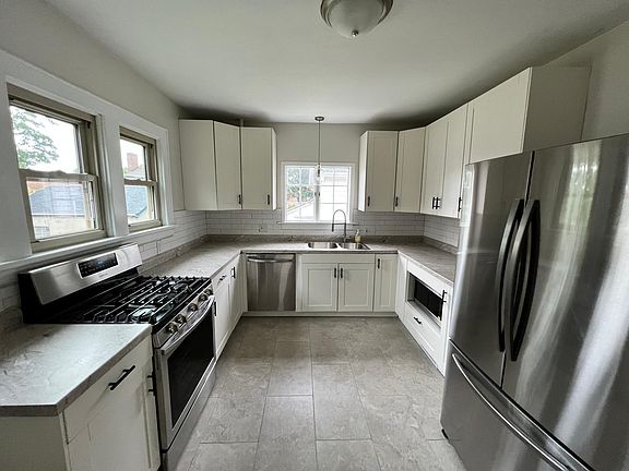 Newly renovated kitchen with stainless steel appliances (dishwasher, fridge, oven) and ample cabinet space