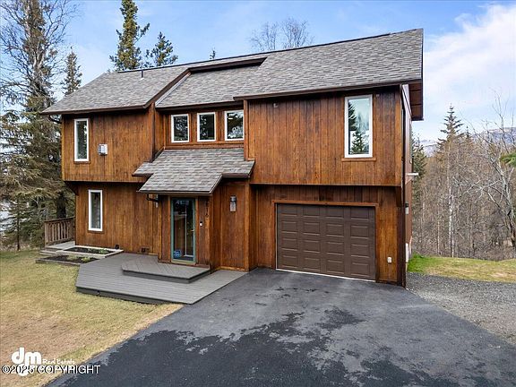 Luxury Living Reimagined! This contemporary mid hillside masterpiece was completely redesigned in 2020 from the studs out by professional designers & engineers blending cutting-edge efficiency with timeless sophistication. Every detail carefully selected to achieve the finest quality aesthetics & improvements: including electrical, plumbing, windows, insulation, roof and fortified foundation.Enjoy year-round comfort with spray foam insulation, an R-47 attic, a 96% efficient boiler, and a premium insulated garage door. Step inside to discover imported Italian porcelain tile, luxurious hardwood floors, room-darkening Graber blinds throughout, and high-end pet-proof carpet. The gourmet kitchen is a chef's dream, featuring a Bluestar commercial range, brand new refrigerator, custom cabinetry, granite and quartz countertops, and a grand butler's pantry. Highlighting the kitchen is hand blown glass pendants and one-of-a-kind chandelier providing elegant illumination. The wine bar stuns with Hawaiian lava stone tile and granite countertops, echoed in the gas fireplace surround, which also conceals a hidden electronics compartment. All appliances and TVs stay, including a Samsung Frame 4K QLED TV an ultra-slim display that doubles as artwork with customizable bezels, Quantum Dot color, and an anti-reflection matte finish. Step up to the inviting spacious second floor living area which includes peak a boo cityscapes and another well crafted gas fireplace with stacked stone from floor to ceiling next to a cozy window seat. Accentuating the adjacent wall is a second Samsung Frame 4K QLED TV. The primary suite is a private retreat with panoramic Chugach mountain views, a balcony hot tub, and a spa-style en-suite bath featuring heated floors, a walk-in shower, and treetop canopy views. A walk-in closet completes the suite. Additional highlights include: Newly paved RV pad & retaining wall Freshly stained siding Reverse osmosis water system and water softener on community well with abundant water LRSA-managed road maintenance and spring curbside lawn waste removal Thoughtfully curated furnishings and artwork are negotiable, making this truly a turnkey luxury home.
