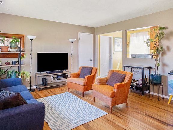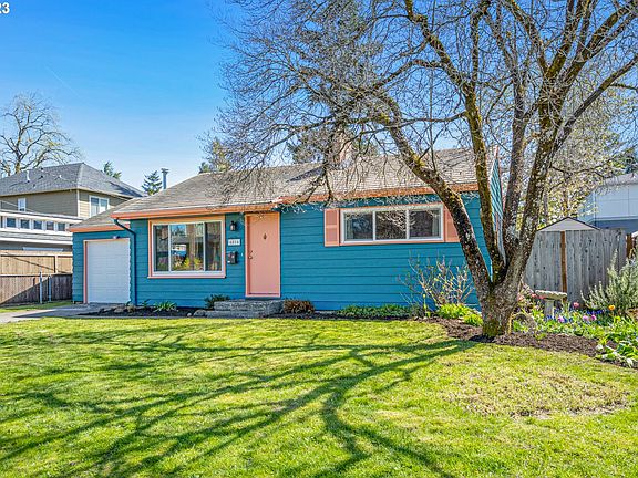 Come see the sweetest little gumdrop on the block! This bright and cheerful ranch is loaded with personality and everything you're looking for in a 1950's build including original hardwood floors, functional layout, and attached garage. This two bedroom home also includes plenty of improvements like newer windows, a metal interlocking shingled roof, new garage door, new bedroom carpet, gas fireplace and a new AC unit to keep you cool. Clean and bright garage is loaded with potential. Nestled on an oversized lot with established landscaping and lots of room to expand the garden. Get ready to spend all summer on the covered back patio in your sunny south facing backyard! OPEN HOUSE Saturday 4/29 from 1PM-3PM. [Home Energy Score = 3. HES Report at https://rpt.greenbuildingregistry.com/hes/OR10003960]