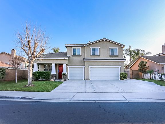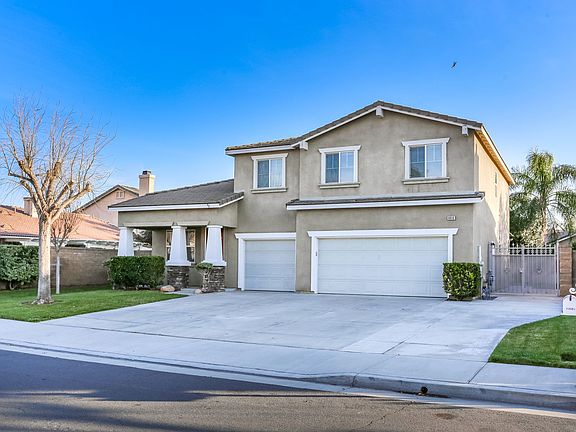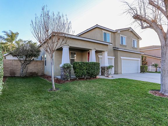 Beautiful 5 bedroom, 3 bathroom, 2 story home in the community of Eastvale! Enjoy a landscaped front lawn, elegant entry, high ceilings, and an open floor plan. The living room offers an inviting fireplace and laminate wood flooring. The kitchen features a center island, granite countertops, and lots of cabinet space. The upstairs primary bedroom has carpet flooring, a private fireplace, dual sinks in the primary bathroom, a soaking tub, and walk-in shower. Additional property highlights include the outdoor storage shed, built-in barbecue, 3 car garage, and no HOA. Convenient to area schools, shopping plazas, and easy access to major freeways!
