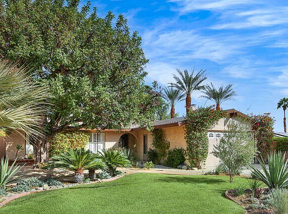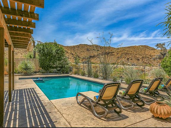 This home's setting offers the best of both worlds: natural beauty and a sense of seclusion, yet a central location for easy access to Palm Springs, Cathedral City, Rancho Mirage and Palm Desert. Located in Cathedral Canyon Cove two minutes from Hwy 111, the back of the property abuts undeveloped desert hills and washes, affording both mountain vistas and valley views in the distance. A walk or a jog on the trails behind the house followed by a soak in the spa or a jump in the pool is a perfect way to start the day. The 3BR/2BA property's living room and master bedroom sliders open to covered patio, pool, spa and views; dining room with fireplace adjoins a white and stainless kitchen in a very open format. This home has been a very successful vacation rental for the current owners.