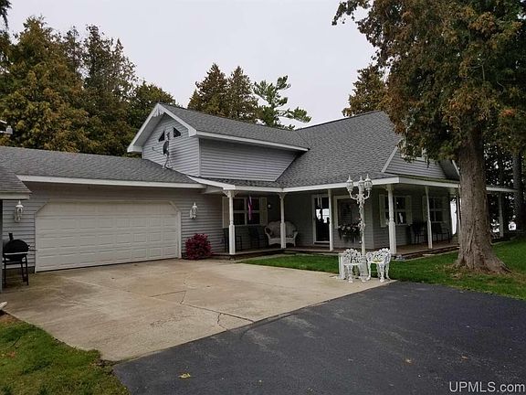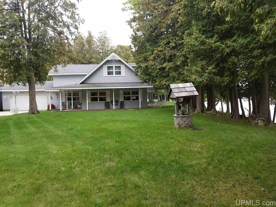 This waterfront beauty sits on the shores of Garden Bay which is a great place for fishing. boating, hunting and golf. Home features wrap around covered deck with fantastic views of Lake Michigan. Special features are a floor to ceiling fireplace, large windows, jacuzzi tub, garden area, paved private drive. This home is spotless and move in ready and the workmanship is top notch. Come and enjoy this home and watch the gorgeous sunsets.