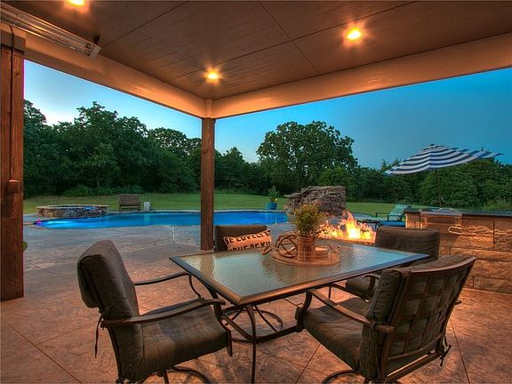 AMAZING Modern custom luxury craftsman home with modern & rustic accents. Amenities include: soaring ceilings, home theater with 110" screen, H20 Ozone pool, outdoor living, fire pit, waterfalls, outdoor shower, 5 CAR GARAGE with room for car lifts, security cameras, touch less faucets, remote blinds, etc. Beautiful wooded area with rustic & modern Colorado mountain settings. Forest Creek Estates provides you with the kind of picture-perfect layouts, natural beauty, and remarkable views that make any house a home. The natural beauty of Forest Creek Estates will inspire you to dream big. This environmentally friendly, gated community, with its 5-acre lake, 15-acre nature preserve and acreage lots, is designed for people who wish to create a distinctive home. Wooded lots and winding roads with amazing gated entry with extensive landscaping, boulders, waterfalls and mature trees. This look is very hard to find in Oklahoma. See this one is person. BEAUTIFUL SETTING!