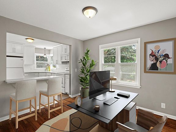 This Saint Louis Park rambler is a charmer! Beautifully updated from top to bottom w/stunning hardwood floors throughout the main level. Fully updated Kitchen; new cabinets (w/ tons of storage!), solid surface countertops and easy care tile floor. Don't miss the cute 3 season porch off the Kitchen (perfect for that morning cup of tea) and the patio is definitely ready for some grilling! Easy entertaining with the open Living Room and Dining Room layout. Flex Room on the main level is great for the home office or a breakfast room. HUGE primary bedroom (13x14), 2nd Bedroom and an updated full bath complete the main level. Lower level Rec Room is the ideal place for movie night or the game tables. Semi private bedroom (egress window) and a 3/4 bath is a welcoming retreat for company. Huge utility room offers more storage, Laundry and mechanicals. ** New windows on main level (2016), HVAC (2023), Water Heater (2021) and much more. See Update list in supplements. Also note the convenient Double WIDE Driveway for easy parking!