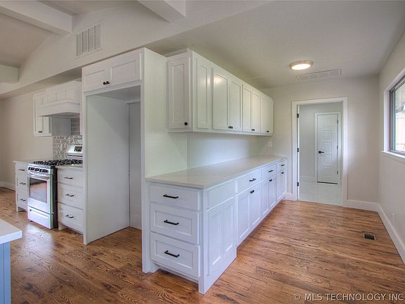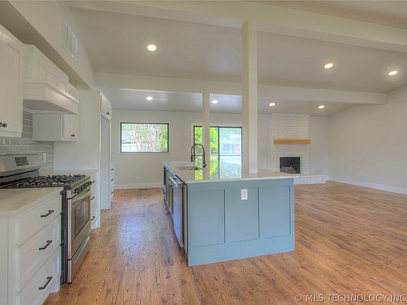 Beautifully renovated mid-century ranch style home in the heart of Tulsa. One story with a wide-open floor plan, kitchen opening up to massive living room & dining room which also has room for an open office. This home is a perfect for entertaining guests, a must see. Two bedrooms, two baths. Brand new quartz throughout, new appliances, new roof, new paint, new floors…this house is move in ready & will go fast. It also has a spacious laundry room. Right by LaFortune park & minutes away form I44 and HWY51