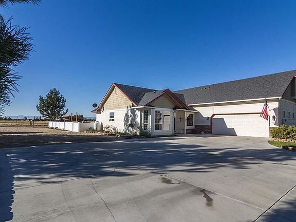 Outdoor living at its best! This gorgeous ranch style home sits on a private paved lane with 5 acres. You will love the quiet and open space of this home featuring an open floor plan, hardwood flooring, stunning living space, stylish kitchen with granite counters and spacious master retreat with walk in shower. Outside you will find lots of space to build a shop, RV parking, storage shed, corrals, flower beds and mature landscaping. Fully fenced with irrigated pastures and water rights.