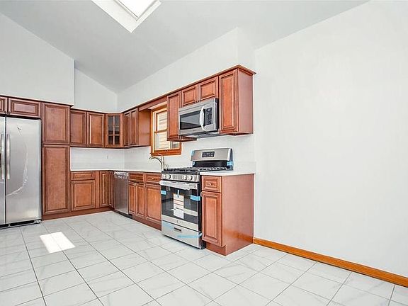 Gleaming hardwood floors throughout, light-filled open-concept living spaces, living room bay window, in suite master bathroom, wall-to-wall closets in each bedroom. All interior spaces freshly painted. Renovated kitchen feature custom-designed cabinetry, soft-close automatic drawer and door, just-installed quartz countertop, high-end stove, microwave, refrigerator, and dishwasher. Easy, frequent access to NYC transportation. Schools and ample local shopping within easy walking distance. Owner pays for water and renters pay heat, electric and gas.