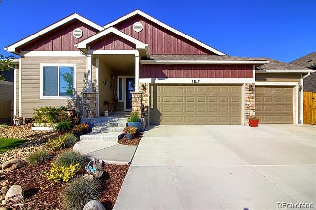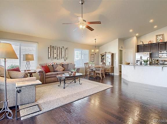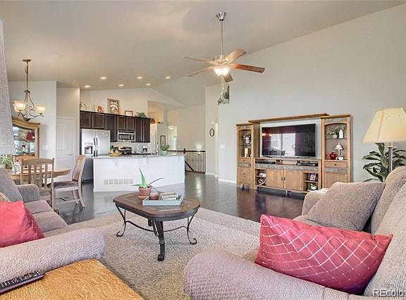 Welcome Home! This gorgeous move-in ready ranch style home features an open floor plan, vaulted ceilings, an abundance of natural light, walk-in closets, a 5-piece bath, fully finished basement (also with lots of natural light!) and a 3 car garage. Upgrades include 1 year old refrigerator, veneer on kitchen island, cabinets in laundry room, new shower door, professionally tinted windows throughout, new sliding doors and new blinds in master bed & bath. Beautiful professional landscaping with fire-pit area and pergola, raised deck and garden boxes in the fenced in backyard. Quiet neighborhood with parks close by and easy access to I-25. This home shines inside and out!