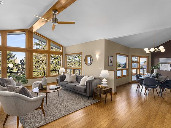 Located on the northern slope of Mt. Tabor on over a third of an acre, this spectacular mid-century modern is a rare find. With sweeping views over NE Portland from the vaulted living room & full-length deck, it exudes light, beauty and space. Master on the main with walk-in closet & newer master bathroom. Spacious kitchen with new quartz countertops, built-in convection oven/microwave and hardware. Daylight basement includes extra living quarters with 2nd kitchen, deck, and separate entrance. [Home Energy Score = 6. HES Report at https://rpt.greenbuildingregistry.com/hes/OR10198134]