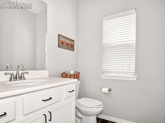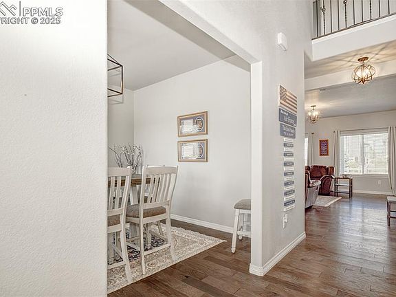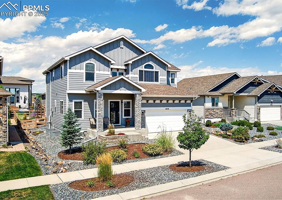 WHOA HONEY, STOP THE CAR! LIKE NEW MOVE-IN READY TWO-STORY HOME WITH FINISHED BASEMENT AND A THREE-CAR TANDEM GARAGE IN SCHOOL DISTRICT 20! Beautifully-landscaped low-maintenance lot located steps away from Kit Carson Riding Club AND open grass space directly across the street! Entering the home, formal dining room to your left would also make a great office. Completing the main level is wood-laminate flooring throughout, family room with cozy gas fireplace, nearby half bath, an amazing kitchen with island, stainless steel appliances, quartz countertops, tile backsplash, white cabinetry, soft-close drawers, large pantry and breakfast nook. Upper level boasts an open landing area, full bath, laundry, and four well-appointed bedrooms providing ample space for a growing family or guests. Spacious primary suite features a sitting area, vaulted ceiling, double closets PLUS an adjoining 4-piece bath featuring a large shower with seat and dual shower heads. Finished basement with newer carpet has roomy rec room with wet bar, PLUS a 5th bedroom, 3/4 bath and unfinished storage/utility room. Lovely back yard with split-rail fence, automatic sprinkler/drip system, partially-covered patio with NEW concrete... a perfect place to relax and enjoy your favorite beverage! OTHER FEATURES INCLUDE: radon mitigation, central A/C, 50-gallon water heater, humidifier, two storm doors and a finished garage with opener. You’ll love the community pool on those hot summer days! Easy access to Powers corridor, shopping, restaurants, movie theater, Peterson and Shriever Space Force Bases.