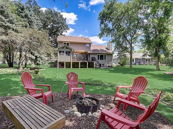 Wonderful Eden Prairie neighborhood! Less than a mile to Prairie View Elementary & EP High School - safely walk or bike to both! Brand-new carpet throughout, new roof in 2021, new Andersen windows & new furnace in 2018, new maintenance-free deck in 2020. Spacious living room, nicely sized formal dining, fabulous 3-season porch with vaulted ceiling, tongue & groove surround & access to the deck. Fantastic kitchen has stainless-steel, Quartz, subway tile backsplash, abundant storage & adjoining informal dining - also with access to the deck! Sunken family room with wood-burning fireplace & huge windows over the backyard. Upper level Primary Suite with attached bathroom offering Quartz counter, dual sinks, tile floor, jacuzzi tub & separate shower. 2 more upper level bedrooms & full bath. Lower level has an expansive family room, 4th BR with walk-in closet, laundry room with tons of storage & rough in for future bath! Amazing backyard with lush landscaping, patio, deck & firepit!