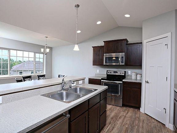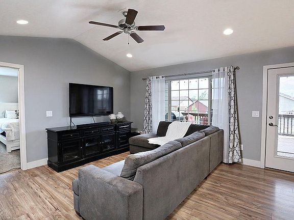 Wonderful ranch style home with plenty of space. The main level offers an open layout, vaulted ceilings and wood laminate floors in the kitchen, dining and living room. 3 bedrooms on the main, including a master suite with walk-in closet and bathroom with dual sinks. The basement hosts a cozy family room, 2 more egress bedrooms, large storage area and a roughed in bathroom. Enjoy the summer nights on your covered deck overlooking your large fenced yard. The home is complete with an attached 2-car garage.