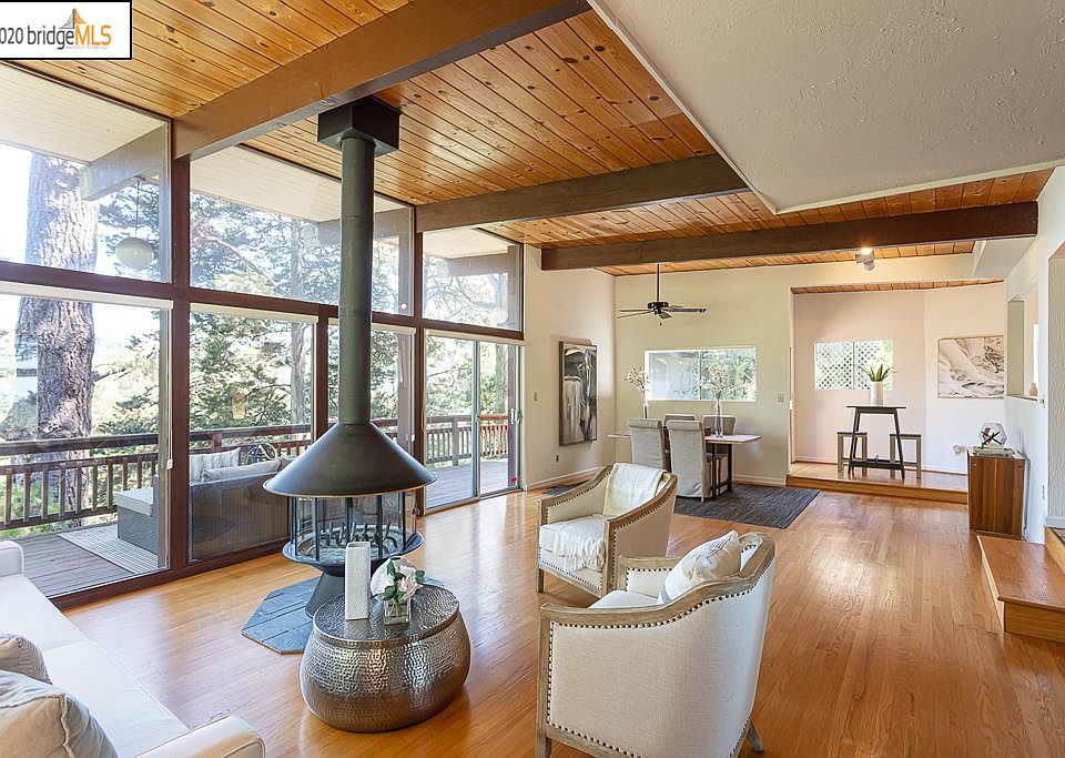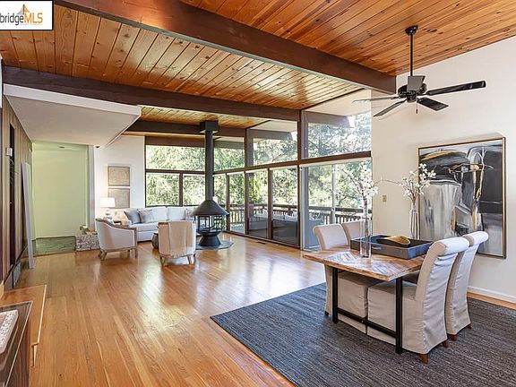 Montclair contemporary in the Oakland Hills. This lovely home is set amongst the trees and boasts vaulted ceilings plus an expansive open concept The main level includes the front entry, kitchen, breakfast nook, dining room and a living room appointed with a fireplace which drops from the ceiling. Adjacent is a full bath and office or room to gather. Descend the open staircase to three bedrooms, the second bath, laundry and utility room which provides ample storage. Covered and off street parking. A diamond in the rough ready for your personal stamp.