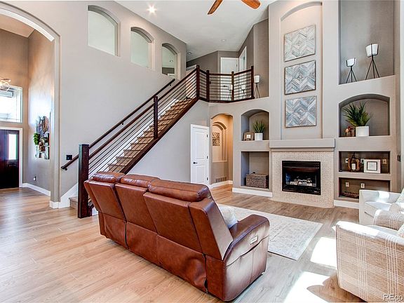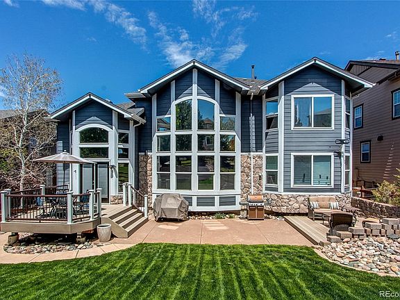 Best Price Point and Condition in Castle Pines North! Outstanding full house remodel with attention to detail and quality finishes throughout. Rare main floor master, two story family room, kitchen, living room and dining room. Outdoor living with over 8400 sq. ft. lot, expanded Trex deck, seating area and patio. Enclosed loft provides private study with three additional bedrooms on the upper level. Finished basement adds media room, wet bar, pool table, exercise area and storage. Warm and tasteful updates throughout with quartz counter tops in the kitchen and baths, new cabinetry throughout, luxury vinyl plank flooring, stainless appliances, wine cooler, pendant lighting, all open to the family room and eating area with easy access to the professionally landscaped back yard. Attractive architectural details in the design include two story bay windows across the back and a front facing balcony with mountain views. Newly designed staircase treads and rails add to the interior appeal. Enjoy the luxurious master retreat with fully updated bath and large closet with organizational features. The home will receive a new upgraded roof prior to closing. Seller has installed an EV Charging Station in the 3 Car garage. Enjoy castle Pines North living at it's best with award winning schools, community events and activities and amenities: pool, parks, playgrounds, trails and stunning Colorado sunsets against the backdrop of the foothills. Golf, shopping, entertainment and dining are easily accessible. Come see the features of this lovely home, stay for the comfort and style.