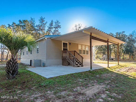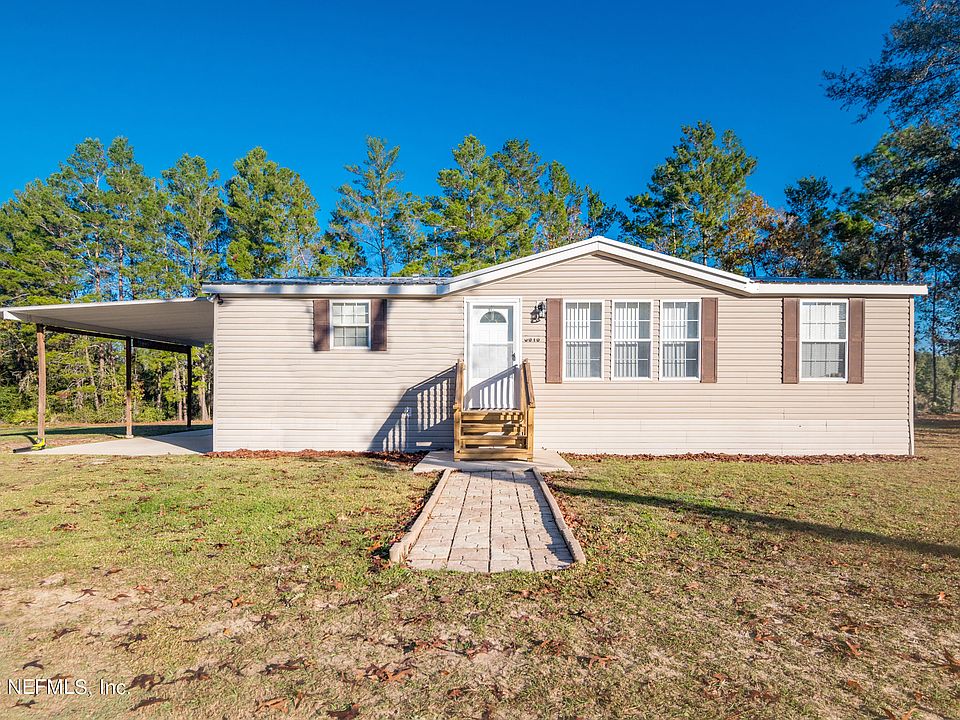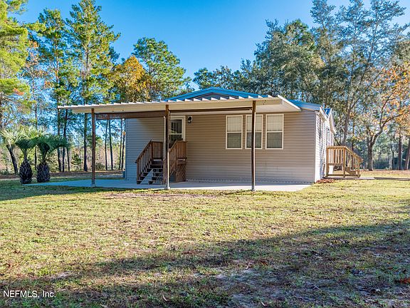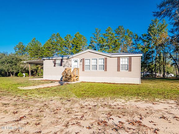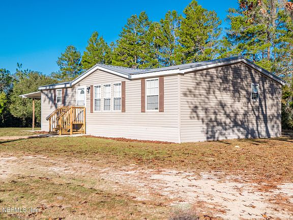 Stunning, upgraded, & move in ready 3 bedroom, 2 bath mobile home on 1.43 acres. Peaceful location with a metal storage shed that has power, cleared property that has been well maintained. brand new front porch steps, as well as a back awning with pull down shades. Power to add RV hookup if needed. Large open kitchen with pantry closet, complete with lazy Susan's in the cabinets. Bedrooms feature walk in closets and new ceiling fans. Master bathroom includes a garden tub and a separate shower. Fresh paint in living room and two of the bedrooms, new light fixtures throughout home. Ceilings were upgraded from popcorn to a smooth finish. Carpet has been freshly cleaned and living room includes built in entertainment center. Metal roof was installed in 2015. Termite bond since 2015. House is zoned for Clay County schools and is MOVE IN READY!