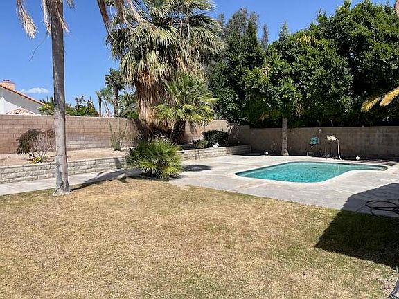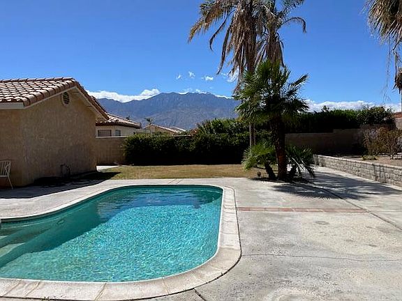 Incredible price for this 3 bedroom pool home! No HOA. Nice open floor plan with tile flooring. High, vaulted ceilings with fireplace in living room. Granite slab counters and updated cabinetry in kitchen and in both bathrooms. Updated AC in 2019 per seller. With some cosmetic TLC, this one has wonderful potential. Large back yard with a wonderful balance of patio and landscaping boasting San Jacinto mountain views! Featuring an RV/boat parking pad or space for a trailer, extra vehicles or work trucks. Convenient access to shopping centers and roughly 15 minutes to down town Palm Springs.