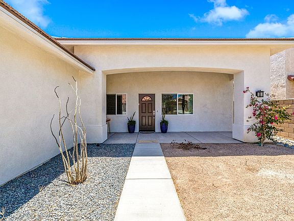 Incredible opportunity to own a beautiful newer home in the Panorama Park neighborhood of Cathedral City. Just recently built in 2020, this is a home you do not want to miss! Spacious open concept style living room, dining area and kitchen. Stunning white and bright kitchen with sparkling quartz counters, large kitchen island and large pantry. Kitchen equipped with breakfast bar as well as separate dining area. Formal dining area is currently being used as a bar and lounge, however this can be easily used as an additional dining space. Continuation of the same quartz counters in the bathrooms as well as custom tile showers and tub! Primary bedroom is bright and spacious with direct access to pool and backyard. Private laundry room with garage entry access. Step into the backyard with an expansive covered patio equipped with ceiling fans as well as misters to keep you cool on those warm summer days. Brand new pool just built in 2021 with a pebble-tec finish and salt-water system. Cool-decking is another wonderful feature of this backyard space for the utmost comfort. This home also has a Wyze smart home lock, cameras on the exterior and interior. All light switches connected to smart home system as well. And it only gets better- this home has FULLY OWNED SOLAR, so you can enjoy all the comforts without the high utility bills! Offered furnished per seller's inventory. Call me today for more information!