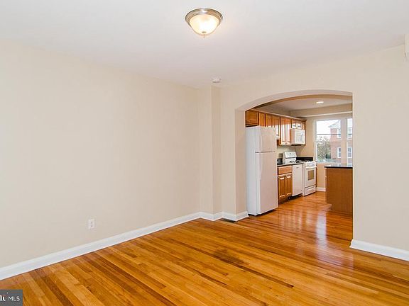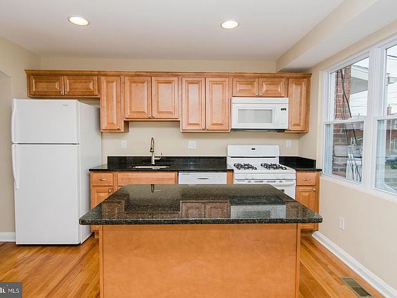 MOVE IN READY PORCH FRONT ROWHOME WITH 3 FINISHED LEVELS & LARGE FENCED YARD! Hardwood floors throughout upper levels, spacious living room, island kitchen w/ granite counters & dining area, upper level w/ 2 large bedrooms & 1 full bath, finished basement w/ family room or 3rd bedroom, full bath, and laundry area, and large fenced yard