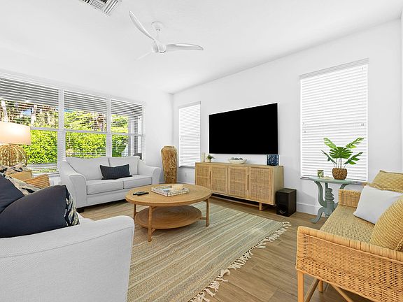 Built in 2021, New Everything, Low Insurance, Move-In Ready! Located in the gated community of Solcera that features a resort-style pool, playground, and dog park. Inside, the layout begins with a versatile flex room, then opens to a bright living dining area and a gourmet kitchen with abundant cabinetry and counter space. Sliding doors lead to a covered patio and fenced backyard that overlooks a lush landscaping area with oak trees. Upstairs, a spacious landing area with loft/den space connects to 3 bedrooms, including a generous primary suite. Enjoy low HOA fees, gated security, and easy access to I-95, Florida's Turnpike, top parks, Downtown WPB, and the area's best beaches.