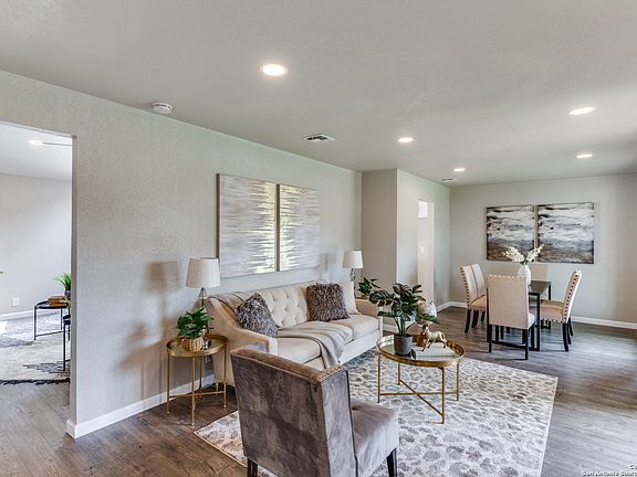Newly remastered ranch style home turned modern, with a serene outdoor oasis ideally located in Camelot II near IH-35 N and O'Connor. With 3 bedrooms/2 baths, this home features superior high-end upgrades. Home includes vinyl waterproof flooring, quartzite & marble counter tops, new stainless steel energy efficient appliances, traditional fireplace, and a stunning in-ground pool. Additional new upgrades include: new exterior siding, new HVAC, electrical rewiring, ring doorbell, new water heater, upgraded plumbing fixtures, spray foam insulation, etc. Home is centrally located near San Antonio Airport, Randolph AFB, the Forum, and a host of other restaurants, retail, and entertainment.