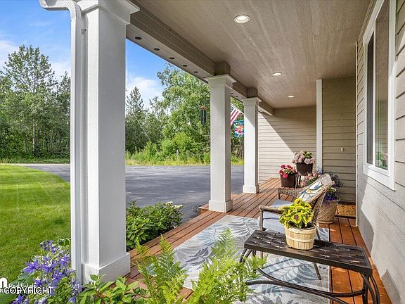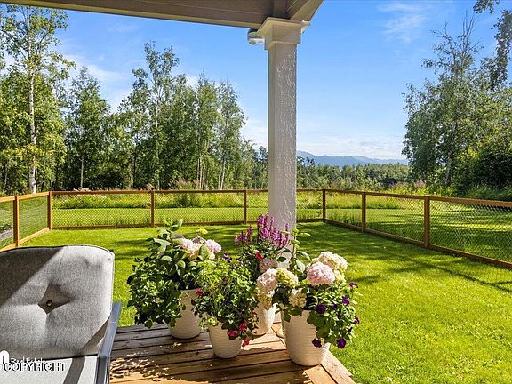 Discover the perfect blend of Alaskan charm and modern luxury in this stunning Wasilla home, nestled on 1.11 beautifully landscaped acres with breathtaking views of the Chugach Mountains. This property, built in 2017, offers a serene escape without compromising on convenience.Step inside to find an open-concept living space flooded with natural light from large, bright windows. The home boastsquality finishes throughout, including a thoughtfully designed kitchen complete with a walk-in pantry and a formal dining area, perfect for hosting gatherings. The main floor features a luxurious primary suite with a spacious walk-in closet, a relaxing soaking tub, and a private sauna, offering the ultimate in comfort and privacy. Upstairs, two generously sized bedrooms and a full bath are complemented by a large rec room, ideal for entertainment or relaxation. An additional bonus room offers flexibility as a home office or creative space. Outside, enjoy the tranquility of both front and back porches, perfect for morning coffee or evening sunsets. The fully paved driveway leads to a three-car garage and convenient RV parking. An upgraded heating system, installed in 2022, ensures year-round comfort. Located off a newly improved road system with future development plans, this home is just minutes from schools, grocery stores, the post office, and more. This is not just a house it's your future home in the heart of Alaska. Don't miss out on this exceptional opportunity schedule your showing today!